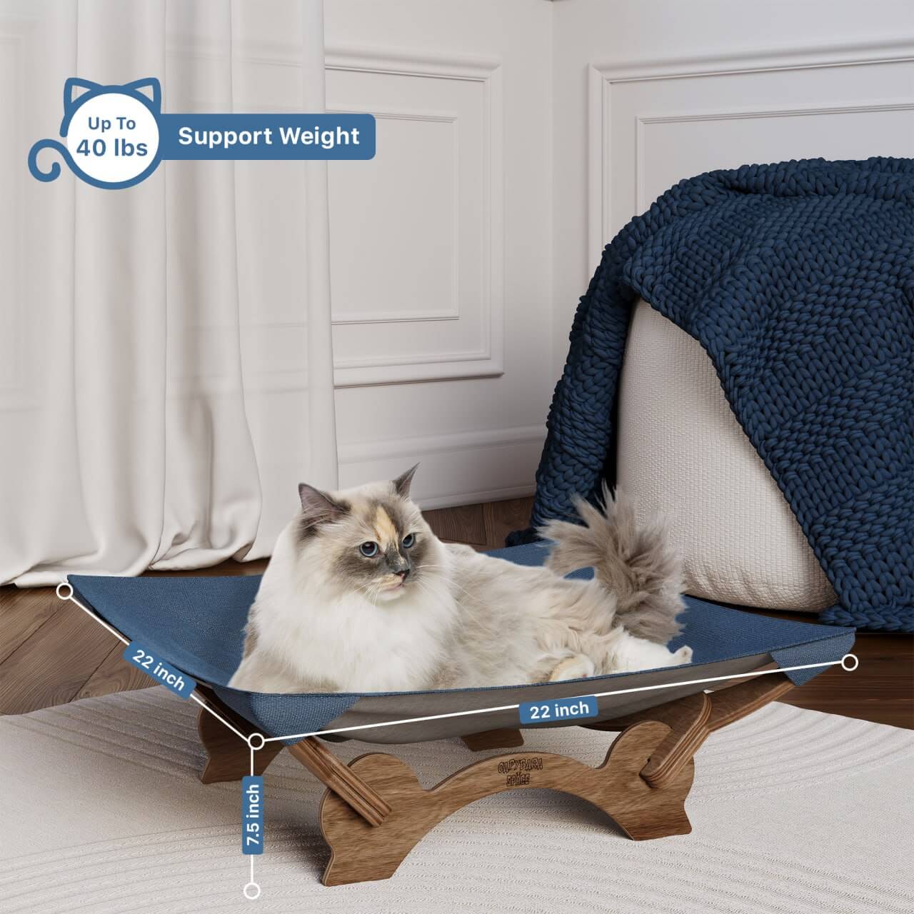 Our indoor CapyBara cat relaxation hammocks are designed with your cat's safety and comfort in mind. They are built to last and can support up to 22lb of weight, while the fabric prevents claw marks from occurring.