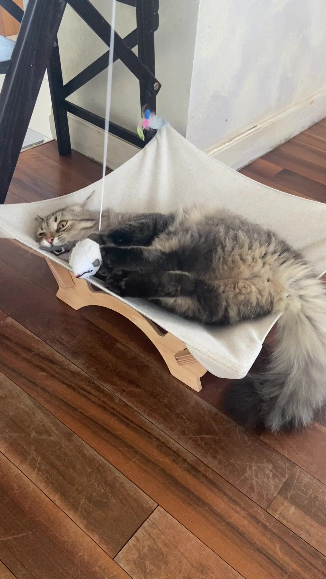 The photo speaks for itself)) The hammock was liked by the cat, now he sleeps in his own bed at night, not in ours))